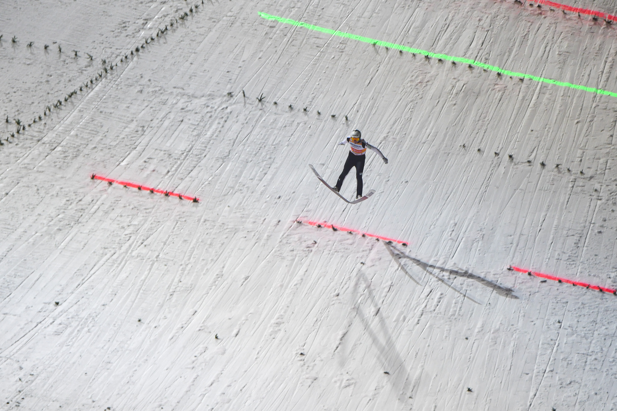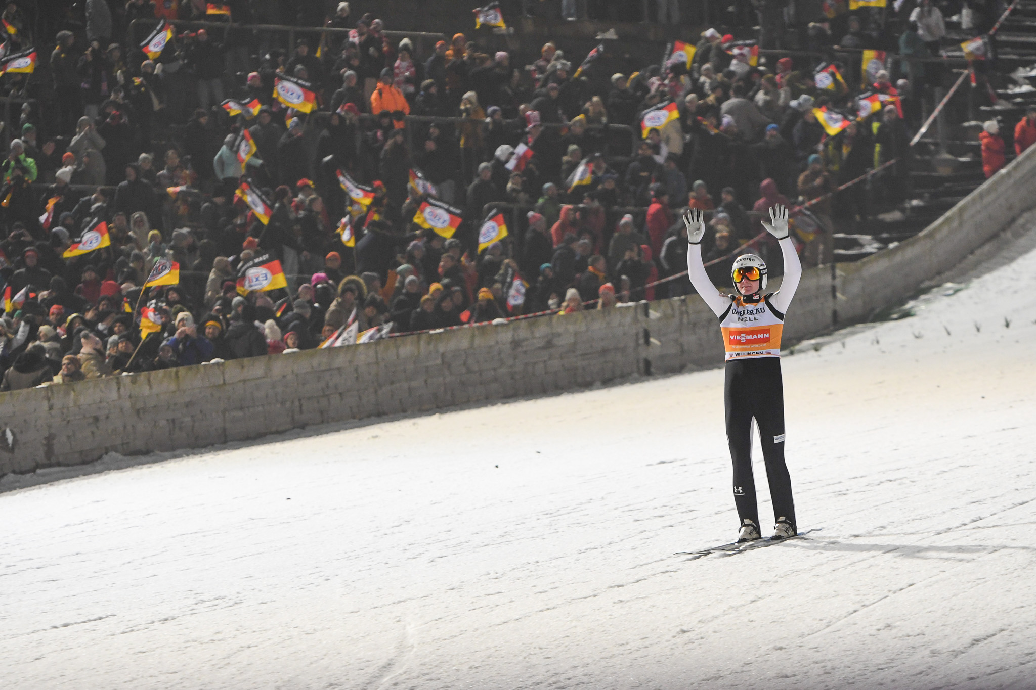 Sehr erfreulich verlief der Wettkampf auch für die DSV-Adler, die mit ihren Leistungen die 22.125 Zuschauer im Stadion in Ekstase versetzten. Überraschenderweise lieferte dabei Karl Geiger eine hervorragende Leistung ab und landete nach 140,5 und 142 Metern sowie einer Gesamtpunktzahl von 237,8 auf dem Podium. "Es war ein sehr besonderer Moment für mich, da es sich nicht abgezeichnet hat. Aber die letzten Wochen waren effektiv. Heute sind mir zwei gute Sprünge geglückt. Ich bin unglaublich glücklich, froh und dankbar, dass mir das gelungen ist", freute er sich und gab gleichzeitig zu, dass die Nichtberücksichtigung für Olympia schon ein Schlag gewesen sei. Jetzt konzentriere er sich auf die letzten Wettkämpfe und zeigte sich zufrieden, dass es in die richtige Richtung geht.
