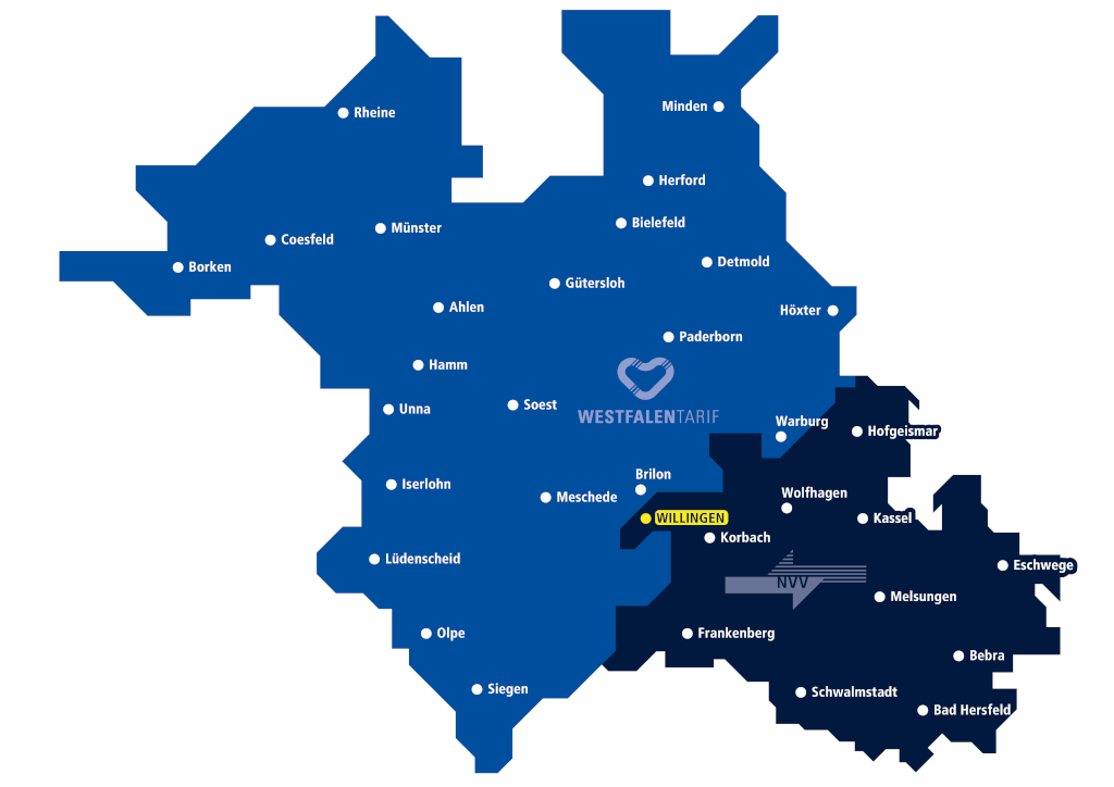 Ihr Eintrittsticket gilt im gesamten NVV- und WestfalenTarif-Gebiet – und das umfasst weite Teile von Nordrhein-Westfalen und Nordhessen. Schon aus vielen größeren Städten können Sie kostenfrei mit dem Nahverkehr anreisen – zum Beispiel aus Münster, Bielefeld, Gütersloh, Hamm, Schwerte, Siegen, Bad Hersfeld oder Kassel.