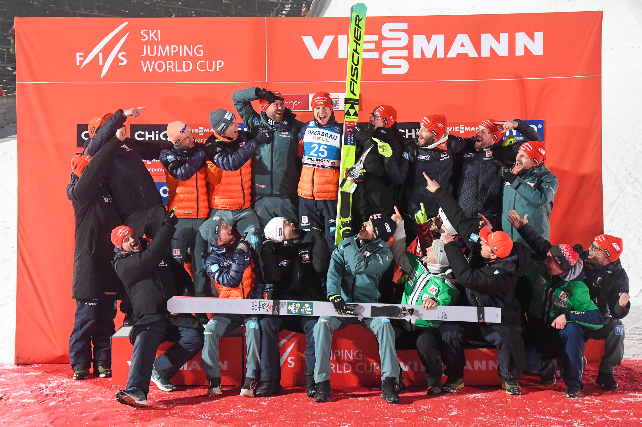 Sehr erfreulich verlief der Wettkampf auch für die DSV-Adler, die mit ihren Leistungen die 22.125 Zuschauer im Stadion in Ekstase versetzten. Überraschenderweise lieferte dabei Karl Geiger eine hervorragende Leistung ab und landete nach 140,5 und 142 Metern sowie einer Gesamtpunktzahl von 237,8 auf dem Podium. "Es war ein sehr besonderer Moment für mich, da es sich nicht abgezeichnet hat. Aber die letzten Wochen waren effektiv. Heute sind mir zwei gute Sprünge geglückt. Ich bin unglaublich glücklich, froh und dankbar, dass mir das gelungen ist", freute er sich und gab gleichzeitig zu, dass die Nichtberücksichtigung für Olympia schon ein Schlag gewesen sei. Jetzt konzentriere er sich auf die letzten Wettkämpfe und zeigte sich zufrieden, dass es in die richtige Richtung geht.